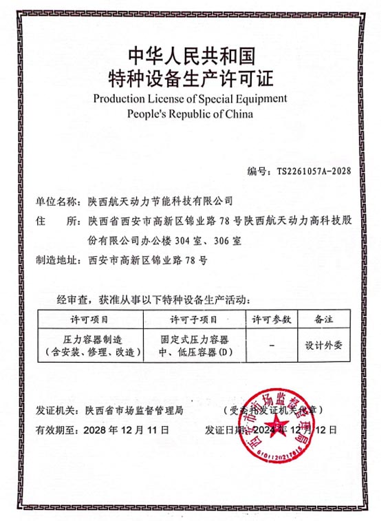 特种设备生产许可证-固定式压力容器中、低压容器(D)